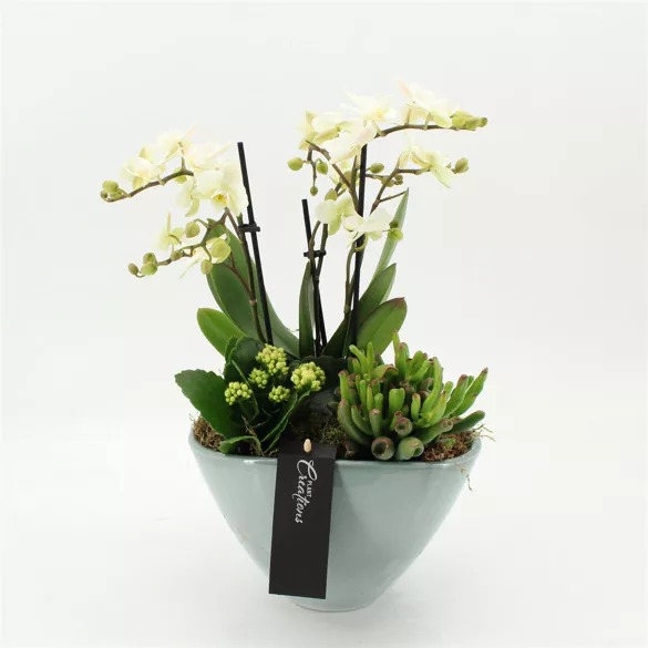 Αγίου Βαλεντίνου Μίνι Ορχιδέες Φαλαίνοψις Σύνθεση με Παχύφυτα και διακόσμηση !!! (Ποτ 21εκ. συνολικό ύψος 55εκ.) (Μόνο για την Αθήνα & Αττική)