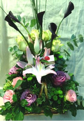 Exclusive flower arrangement.Flowers all around basket.